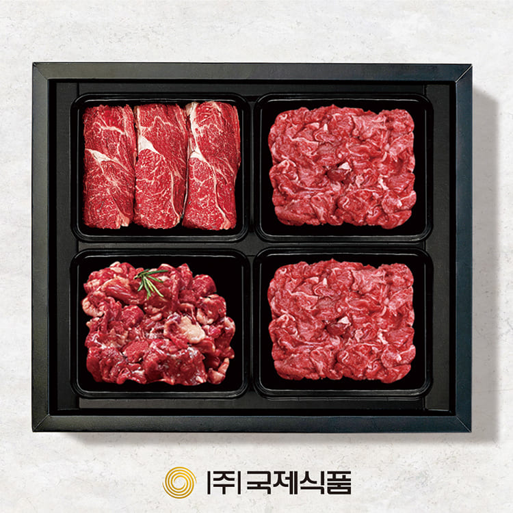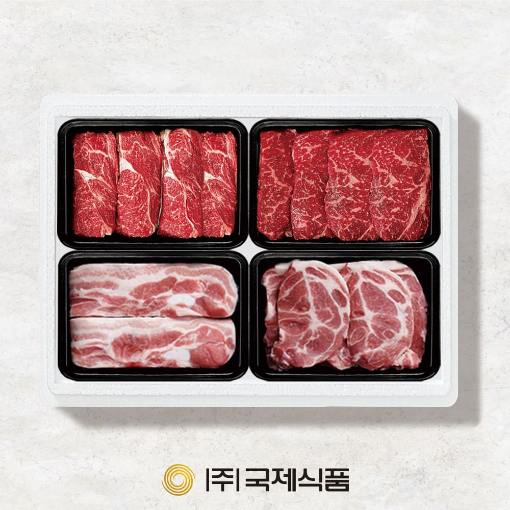 - [국제식품]명품한우.한돈 정성세트 구이 2호 1.6kg, 등심(400g), 채끝(400g), 삼겹살(400g), 목살(400g)