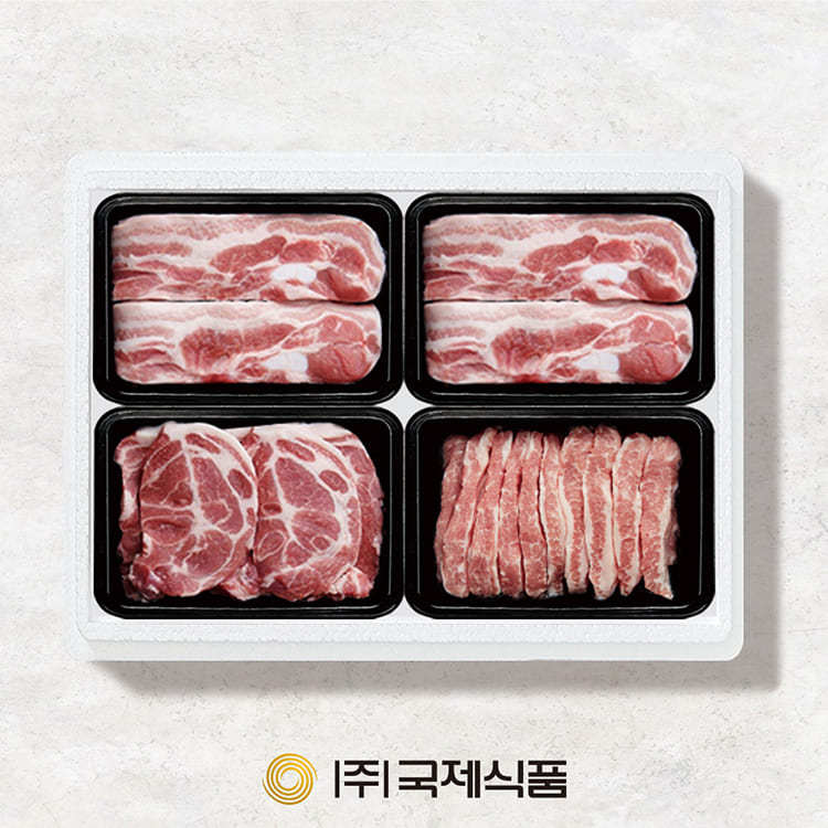 - [국제식품] 한돈1등급 냉장 구이 2호 1.6kg, 삼겹살(400g)*2, 목살(400g), 항정살(400g)