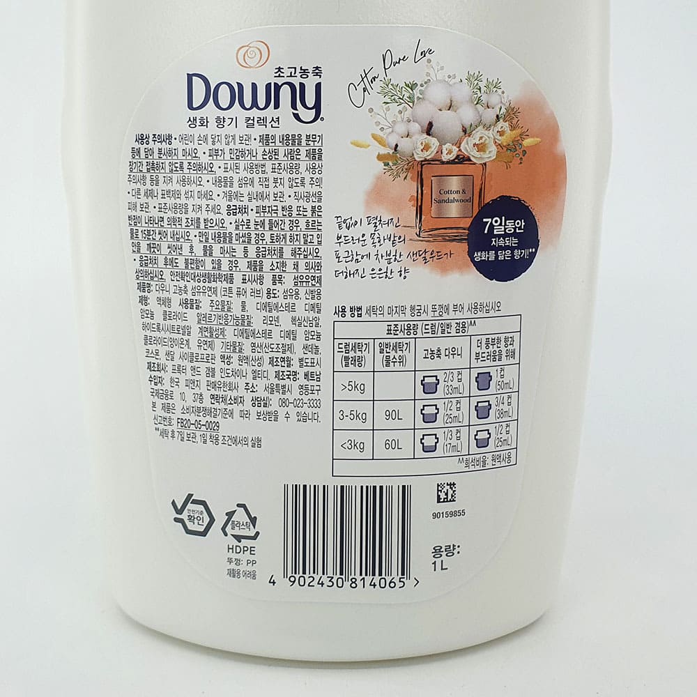 다우니 생화향기 코튼 퓨어러브 1L 섬유유연제 [무료배송]