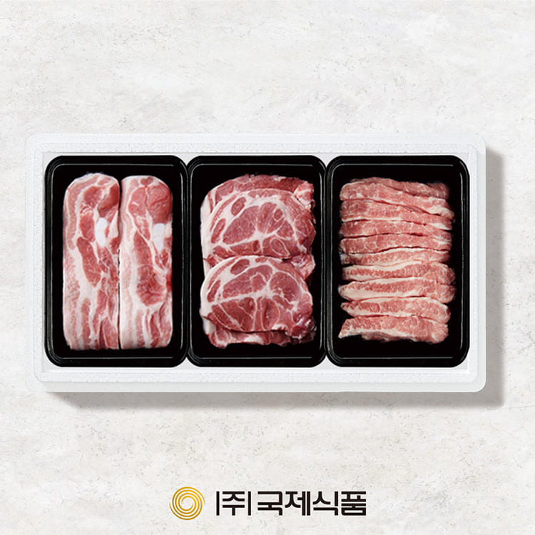 - [국제식품] 한돈1등급 냉장 구이 1호 1.2kg, 삼겹살(400g), 목살(400g), 항정살(400g)