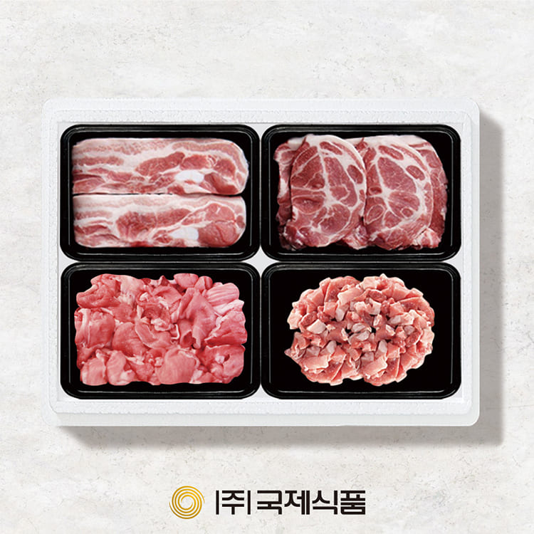 - [국제식품] 한돈1등급 냉장 구이 2호 1.6kg, 삼겹살(400g)*2, 목살(400g), 항정살(400g)